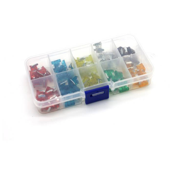 Набор предохранителей флажковых супер мини европейского типа с силой тока от 5 до 30А в удобном пластиковом боксе.
