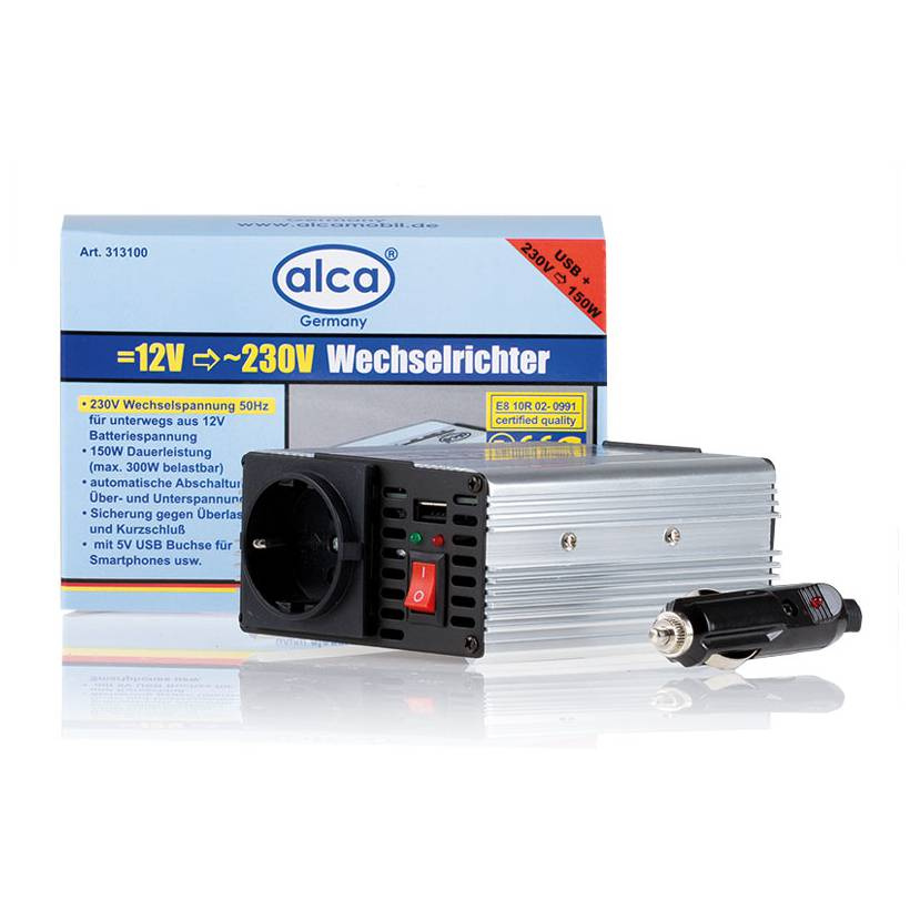 Преобразователь напряжения (инвертор) Alca - устройство для подключения электрических устройств со стандартной розеткой к бортовой сети автомобиля. Инвертор подключается к гнезду прикуривателя и преобразует бортовую сеть 12В постоянного тока в переменный ток 220В.