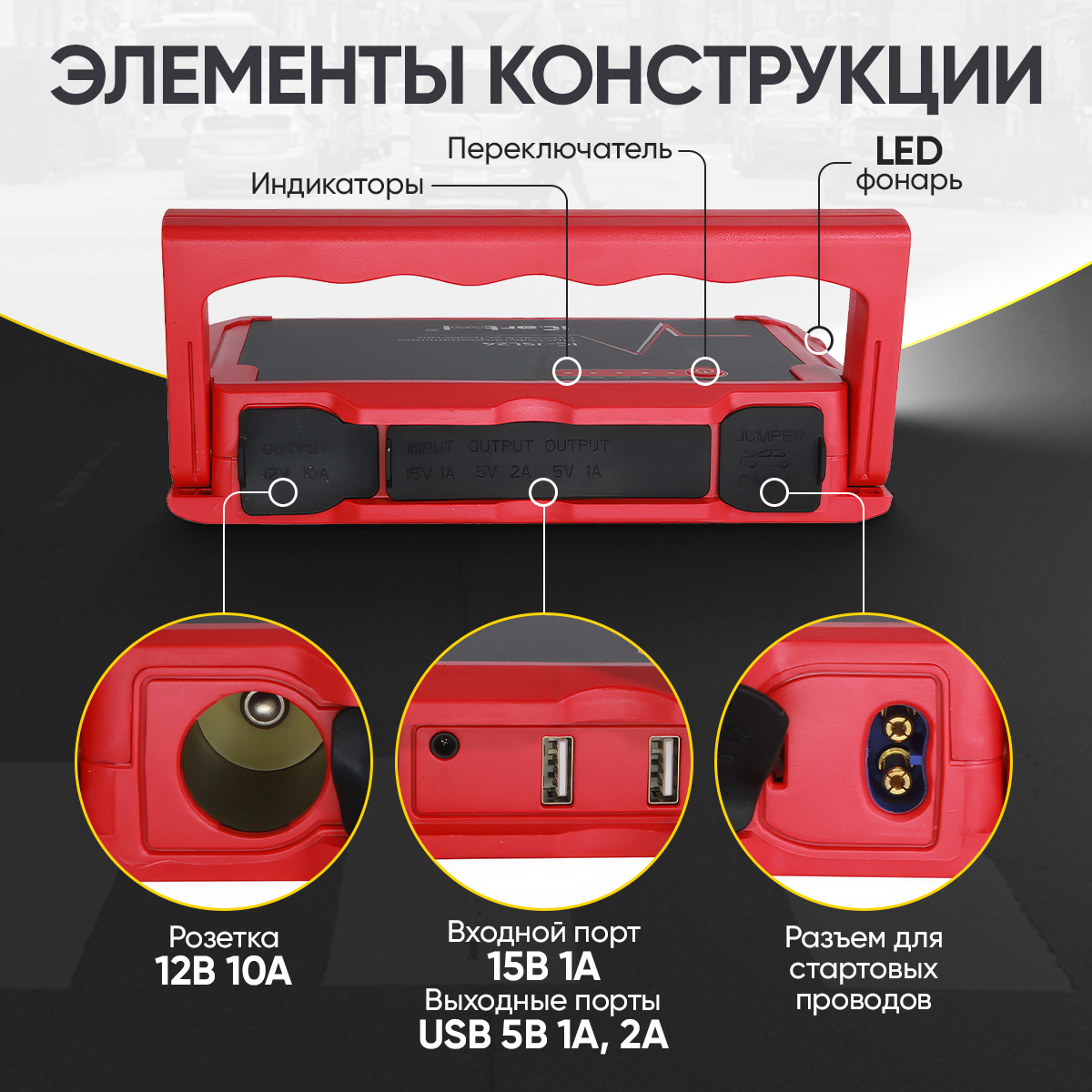 Это и автомобильное пусковое устройство, и портативный источник питания, и мощный светодиодный фонарик с аварийным стробоскопом и сигналом SOS. Заряжайте смартфоны, планшеты и другие USB-устройства при отсутствии доступа к источнику питания 220В. Также само устройство легко зарядить от USB-порта, сети 220В при помощи адаптера или от автомобильного «прикуривателя».