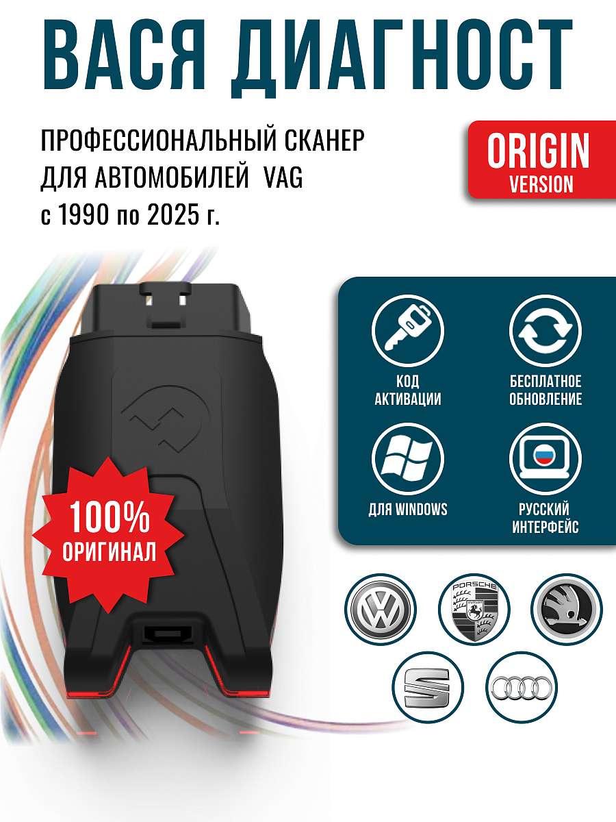 Эту таблицу можно прокручиватьНаименование Вася Диагност (Origin) Вася Диагност (Origin Plus) Соединения с ЭБУ через диагностическую колодку авто K-линия, CAN-шина Техническая поддержка Есть Программное обеспечение Версия ПО 25.7.0, бесплатные обновления Срок гарантии 12 месяцев Комплектация Диагностический интерфейсный блок Вася Диагност Профессиональный адаптер новый дизайн Двухцветная световая индикация состояния + + Кабель USB 2.0 AM-BM 2м съемный + + Диагностический адаптер OBDII VAG2x2 для старых моделей автомобилей + При покупке дополнительного переходника с OBD-II на колодку 2х2 сканер диагностирует автомобили произведённые с 1988 до 1994 года выпуска.