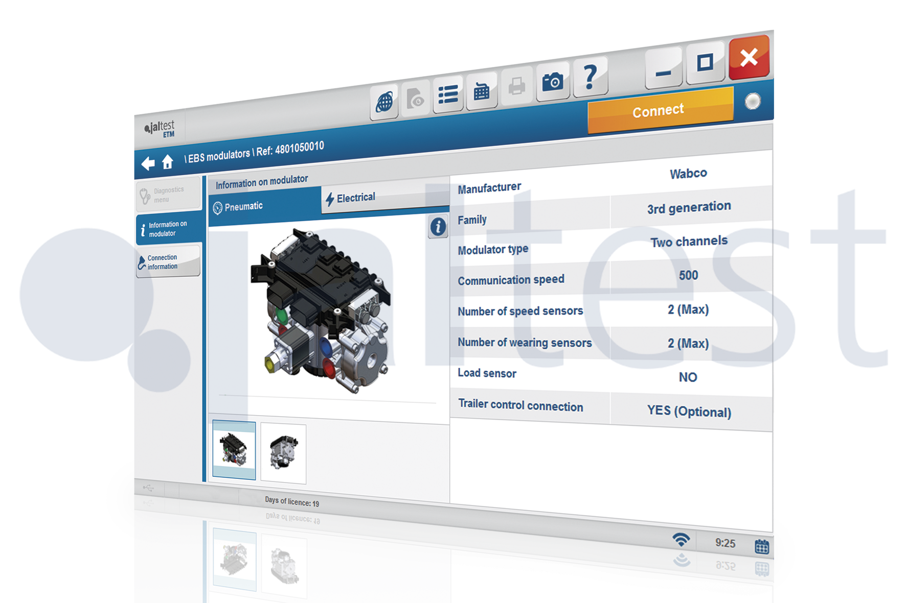 Программное обеспечение Jaltest ETM (Электронный Модуль Тестирования) – уникальный программный модуль, разработанный для прямой диагностики электронных модуляторов и разных датчиков коммерческого автотранспорта.