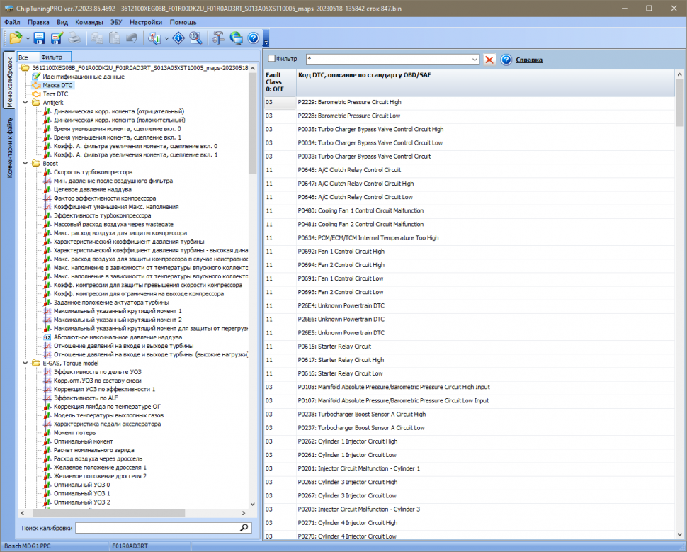 Для изменения доступно около 200 наиболее важных калибровок.