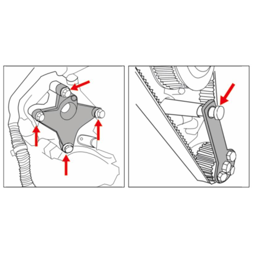 Фиксатор распредвала и натяжного устройства приводного ремня JTC-4929 - набор инструмента для правильной установки фаз газораспределения двигателя при замене приводного ремня.