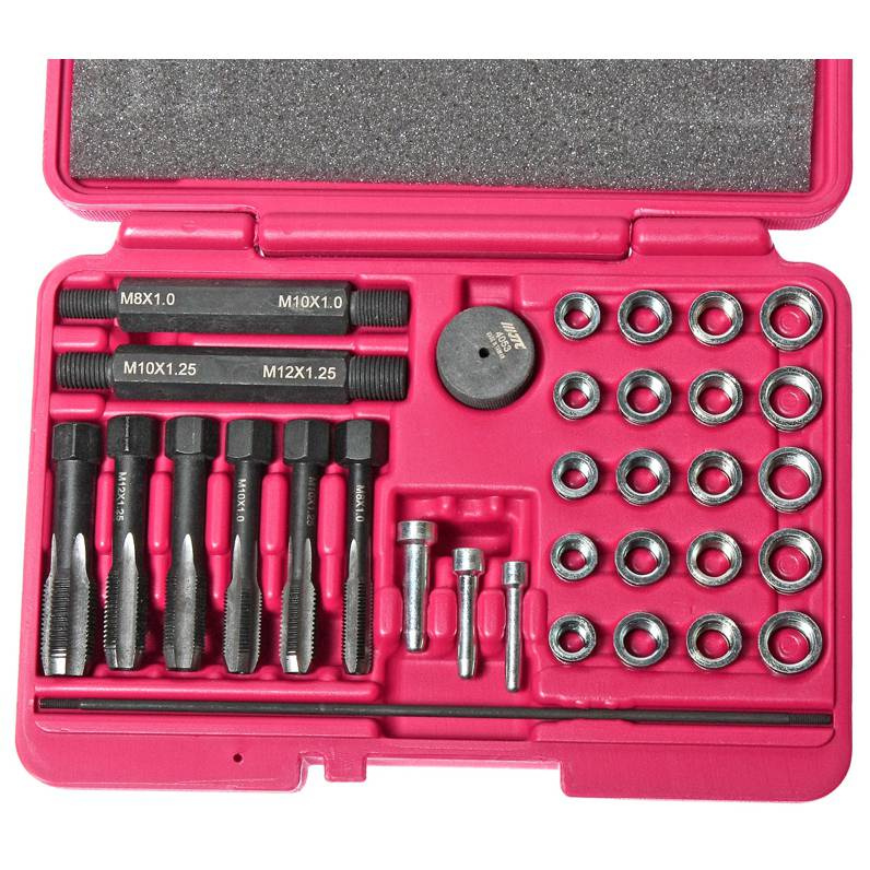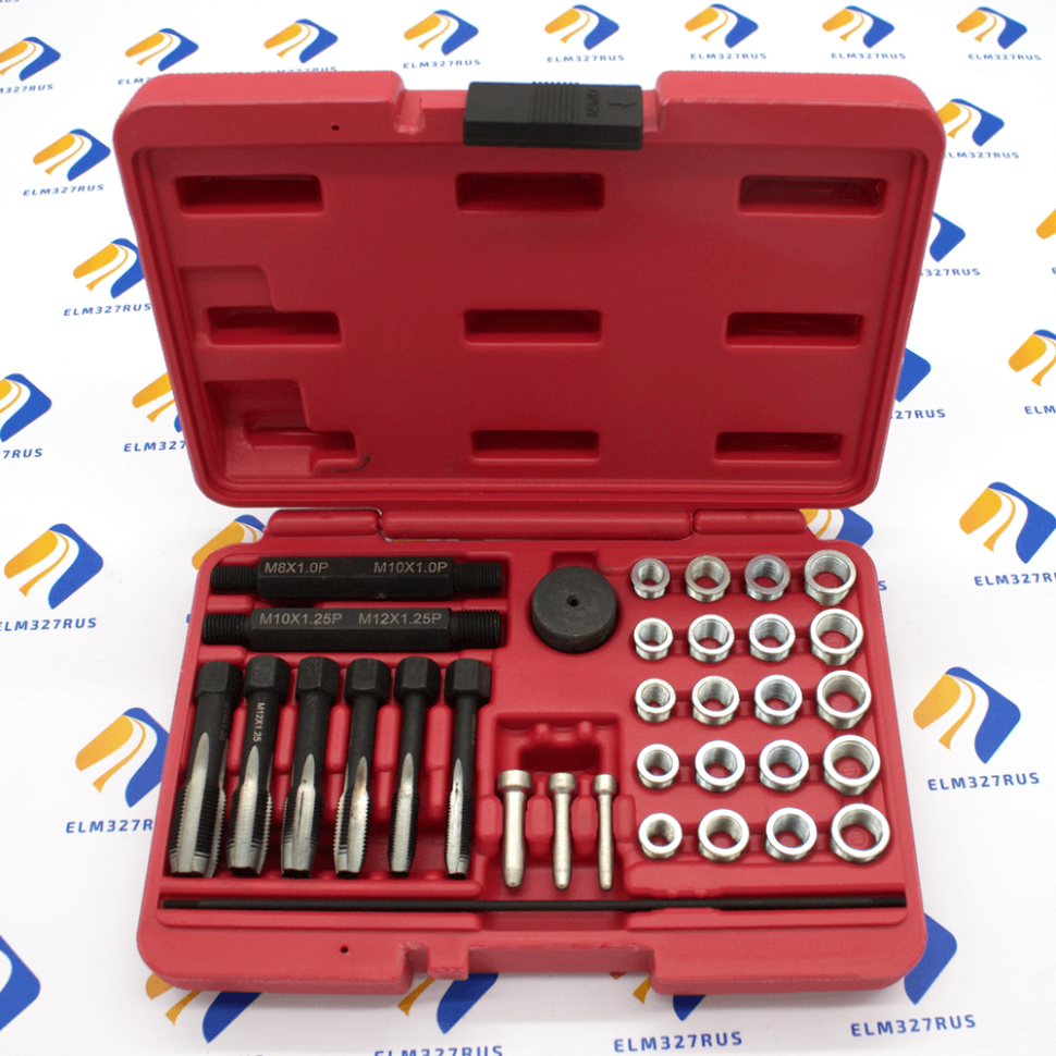 Набор инструментов JTC-4053 используется для восстановления резьбы отверстий под свечи накаливания.
