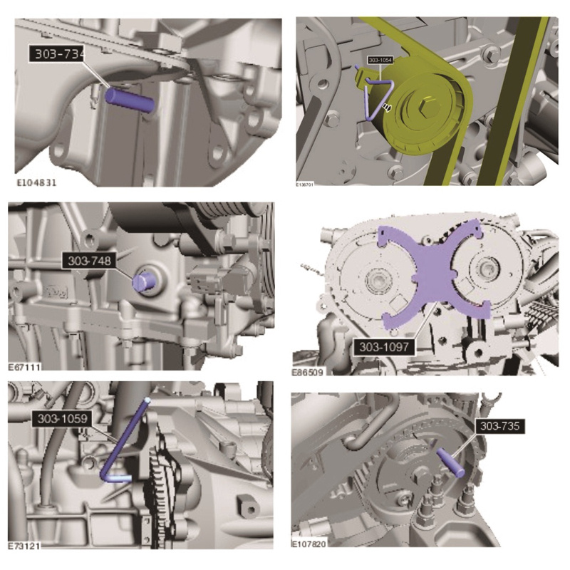 Набор фиксаторов JTC-4234 позволяет проводить корректную установку фаз ГРМ двигателя при замене приводного ремня на автомобилях FORD и MAZDA.