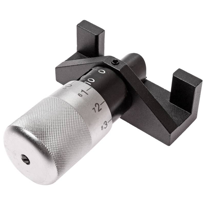 Приспособление JTC-1424 фиксируется на коротком плече (к примеру, между зубчатыми колесами распределительных валов). Устройство обладает ручкой с маркировкой для более точных измерений, а также двойной шкалой, благодаря которой показания легко считываются как с верхней, так и с нижней части приспособления. -