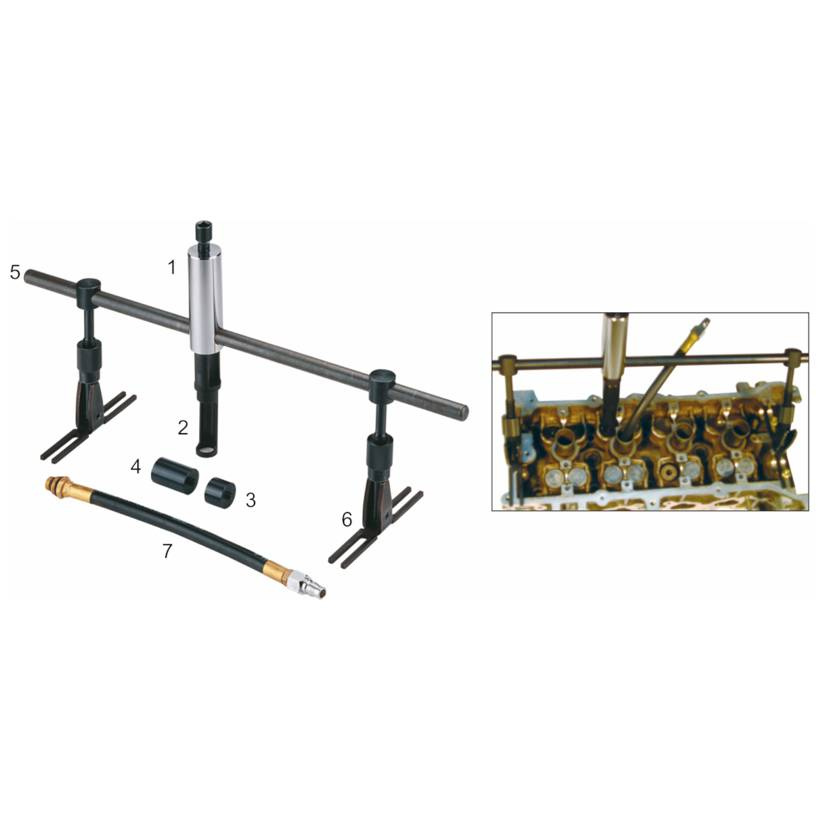 Рассухариватель клапанов универсальный JTC-1238 - запатентованный набор инструментов для установки и извлечения пружины клапана без необходимости снятия головки блока цилиндров двигателя с возможностью подачи в цилиндр сжатого воздуха (для предотвращения падения клапана в цилиндр).