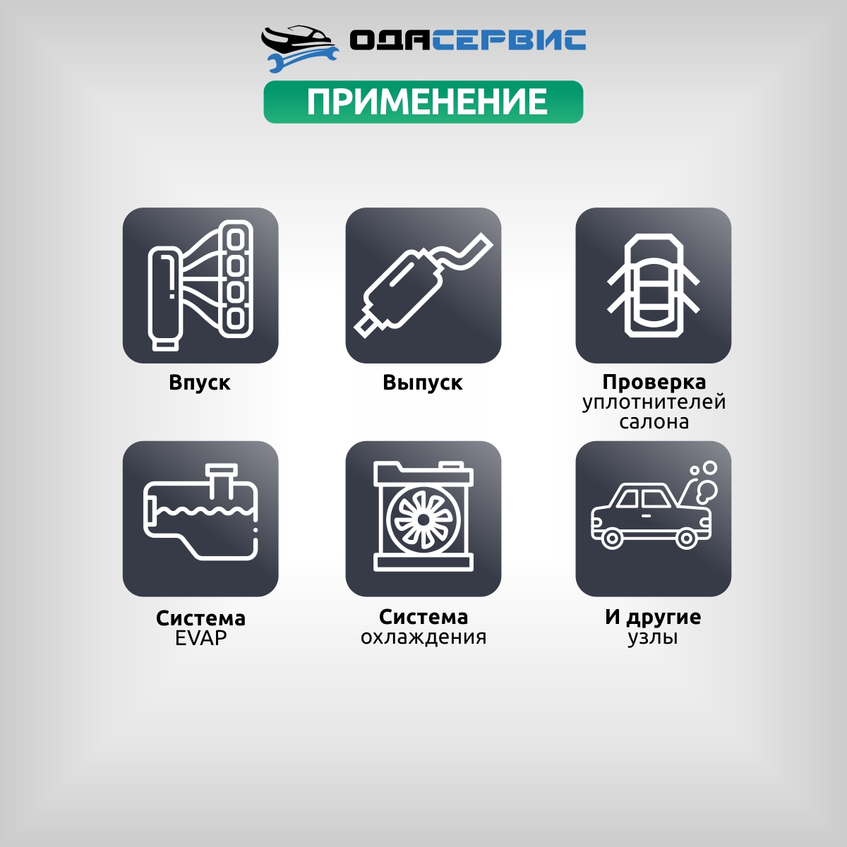 ODA-SG01 генератор дыма для диагностики легковых и грузовых автомобилей. Работает как от 12В так и от 24В. Имеет несколько защит от короткого замыкания и неправильного подключения. Используется для поиска утечек и негерметичности в объемных полостях узлов двигателя, системы впуска и выпуска, системы охлаждения и других систем путем подачи в них дыма и визуального обнаружения места его выхода.