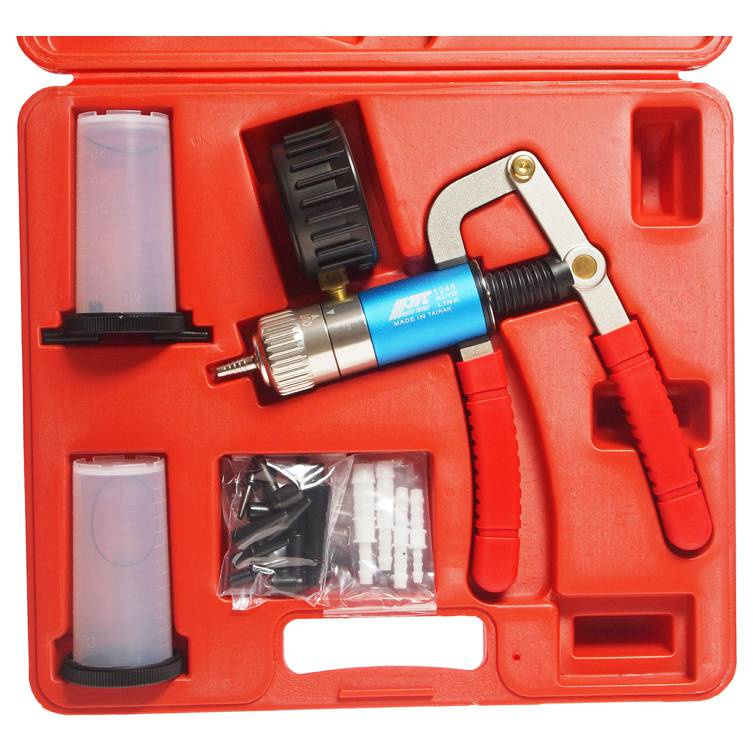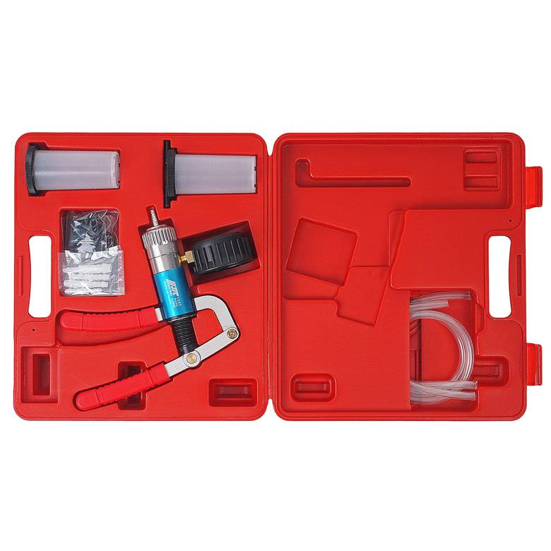 Набор JTC-1245 - приспособления для проведения работ на предмет выявления проблем с давлением и герметичностью в различных системах автомобиля. Это универсальный многофункциональный прибор, позволяющий создавать давление и разрежение в тестируемых системах.