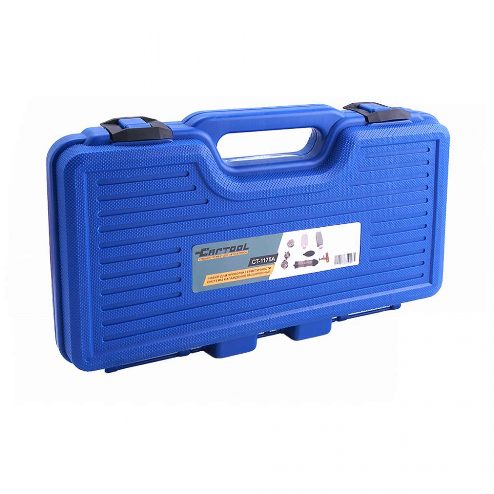 CT-1175A - набор для обнаружения выхлопных газов в системе охлаждения двигателей внутреннего сгорания. Тестер применяется для автомобилей с бензиновыми и дизельными двигателями. С помощью комплекта можно выявить наличие выхлопных газов в системе охлаждения ДВС.