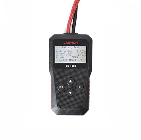 Данное устройство является новой моделью портативного тестера систем АКБ с поддержкой 12В для оценки состояния аккумуляторных батарей любых типов без предварительной зарядки аккумулятора.Важным преимуществом прибора является то, что в нем простота и удобство использования органично сочетаются с достаточно широким перечнем функциональных возможностей. Тестер АКБ Launch BST-560 дает мгновенный результат по оценке состояния АКБ без предварительной зарядки. Анализатор аккумулятора незаменим в работе любого СТО, а также в магазине по продаже аккумуляторов. Дополнительный функционал по проверке системы зарядки и системы запуска расширяет возможности тестера АКБ Launch BST-560.