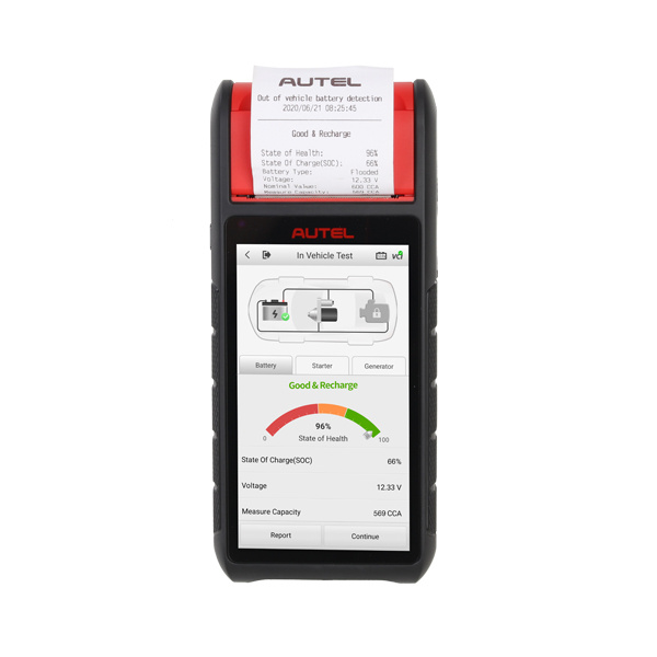 Autel MaxiBAS BT608 - автономное устройство для тестирования АКБ и систем пуска ДВС. Тестер представляет собой планшет со встроенным термопринтером для печати результата диагностики.