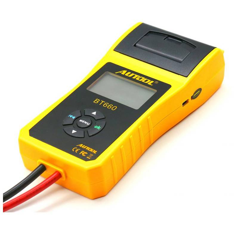 Autool BT-660 поддерживает функцию печати результатов тестирования на встроенном термопринтере, что положительно сказывается на имидже автосервиса - клиенты склонны больше доверять подкрепленным результатам диагностики, нежели "голым" словам диагноста.