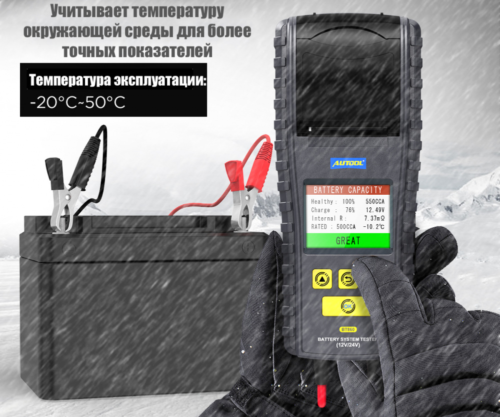 Тестер АКБ Autool BT-860 с термопринтером (12-24 В) по доступной цене ✔ в интернет-магазине «ELM327rus». ✈ Заказывайте с доставкой в Новосибирск и по всему миру. -