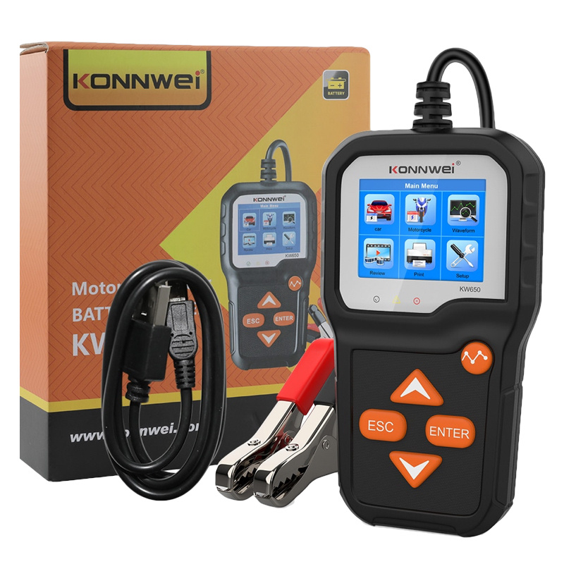 KONNWEI KW650 - тестер для быстрой проверки состояния аккумуляторной батареи автомобиля, мотоцикла, снегохода и прочих транспортных средств, а также для проверки генератора на корректность работы.