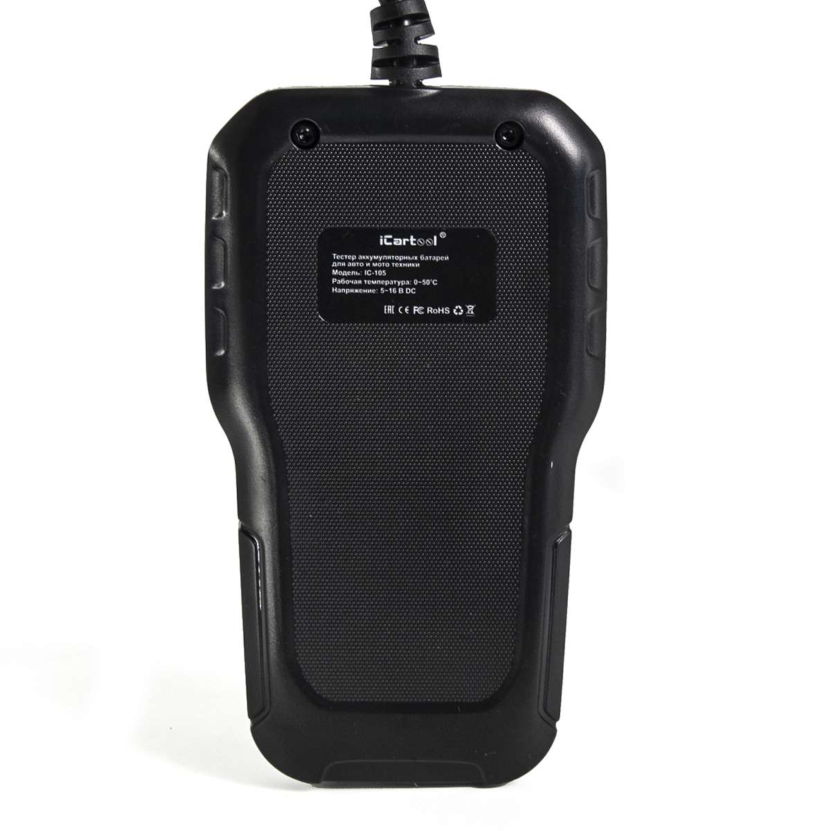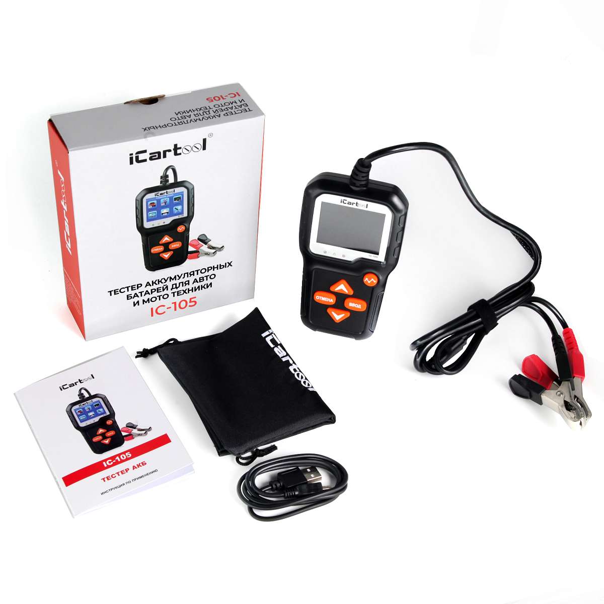 iCartool IC-105Напряжение АКБ 12В 6В / 12В 12В / 24В Типы АКБ Стандартные АКБ, Gel, AGM, EFB Стандартные АКБ, Gel, AGM, EFB Стандартные АКБ, Gel, AGM, EFB, Литиевые (без восстановления) Диапазон измерения тока хол. прокрутки CCA/BCI/CA/МСА/EN/SAE — 100 - 2000