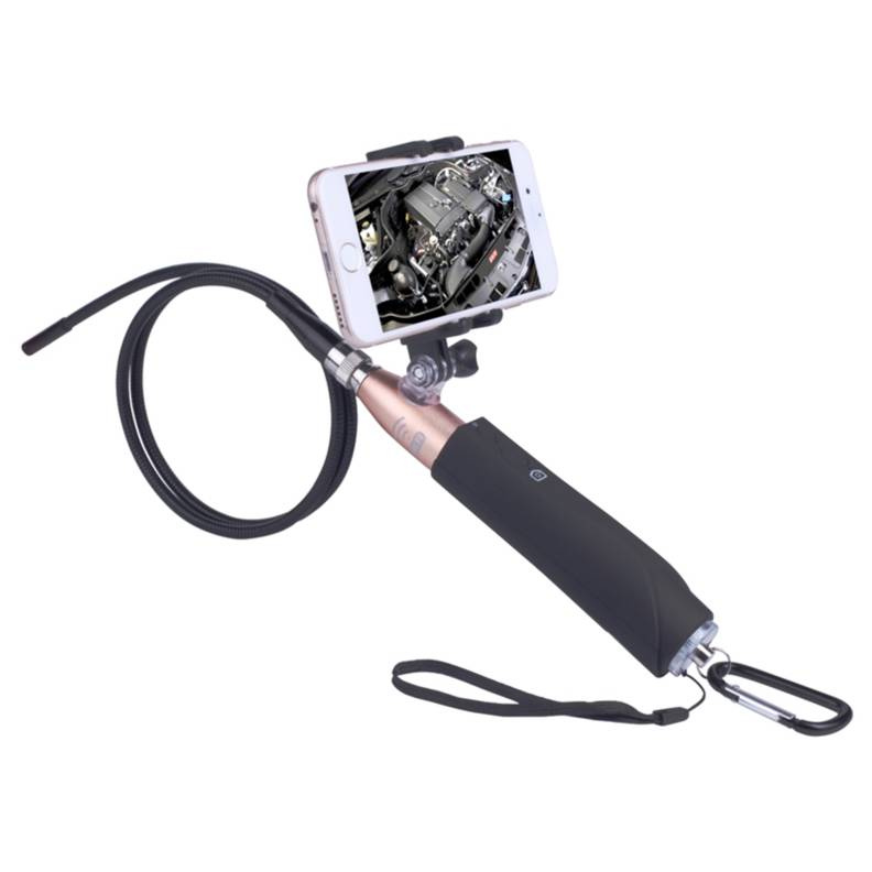 Данное устройство позволяет просматривать изображение исследуемой области, производить фото и видеосъёмку. Отснятые материалы сохраняются в памяти вашего смартфона. Отличительной особенностью данной модели можно назвать высокое быстродействие и отличное качество изображения. Заряжается прибор от любого USB-гнезда, полного цикла зарядки достаточно для непрерывной работы продолжительностью до 60 минут. Комплектация включает в себя также 3 насадки: магнит, крючок и зеркало.