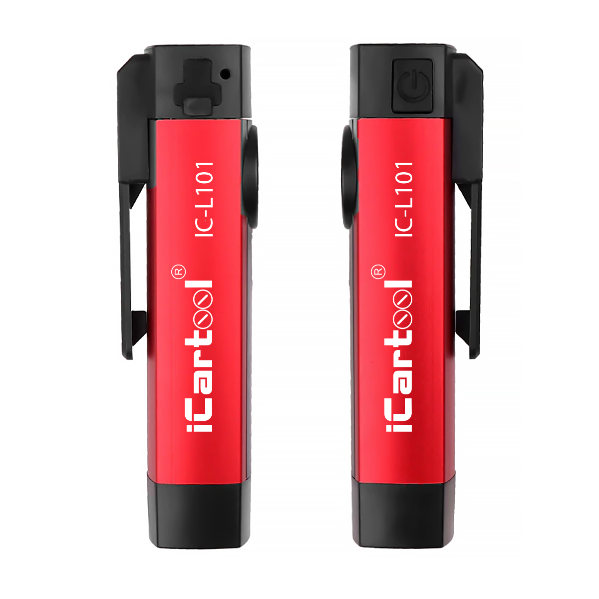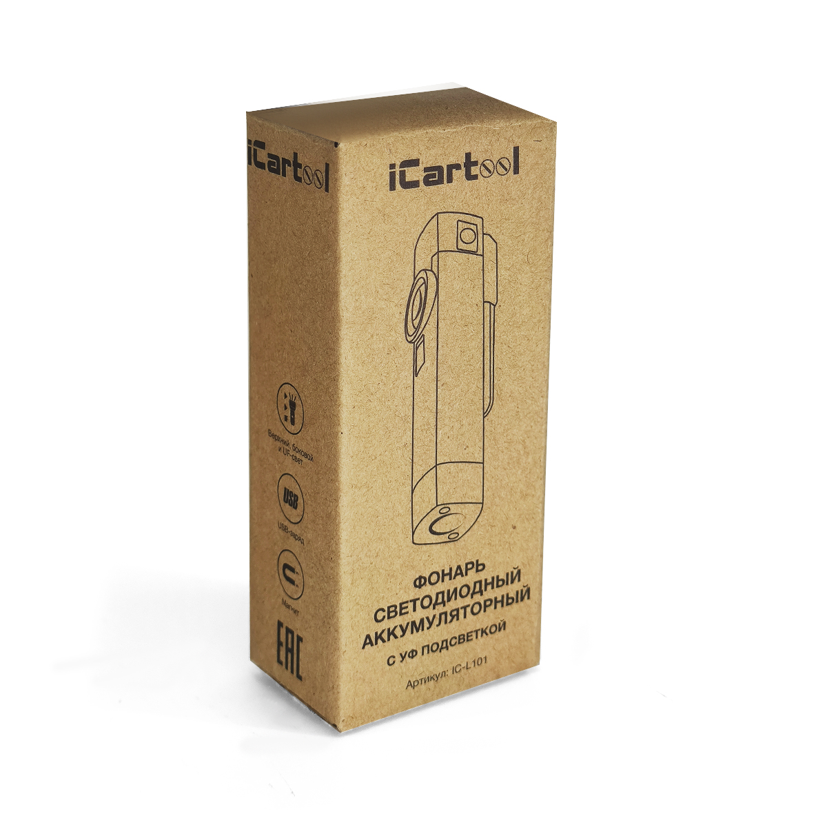 iCartool IC-L101 светодиодный фонарик со встроенным аккумулятором и уф-подсветкой. Имеет компактный ударопрочный корпус, выполненный из высококачественного пластика и стали. 2 встроенных магнита при необходимости позволят закрепить фонарь на любой металлической поверхности. На торце корпуса расположена кнопка для переключения режимов освещения: основного направленного (световой поток 250 Лм),торцевого рассеянного (70 Лм), УФ-подсветки. Последний режим поможет продиагностировать, например, систему А/С автомобиля на предмет утечки фреона.
