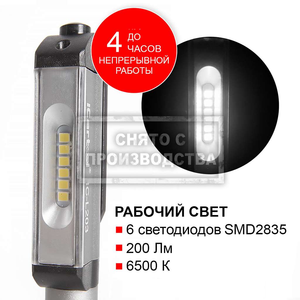 iCartool IC-L203 универсальный инспекционный фонарь-ручка, оснащенный удобной кнопкой-выключателем на торце корпуса. Мощные SMD-светодиоды формируют световой поток в 200 люмен, создавая яркий естественный свет без искажений. Поворотная клипса с магнитом позволяет закрепить фонарь на любой металлической поверхности и при необходимости направить поток света в нужную точку пространства. Корпус фонаря изготовлен из высококачественного алюминиевого сплава. Работает от 3х батареек тип AAA (мизинчиковые).