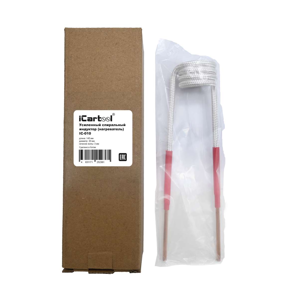 Усиленный спиральный индуктор (нагреватель) длиной 145 мм. диаметр 20 мм. Температура нагрева до 1000 градусов