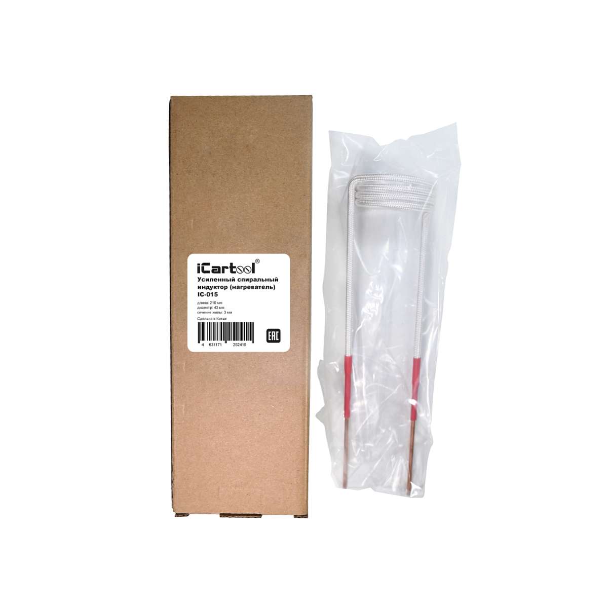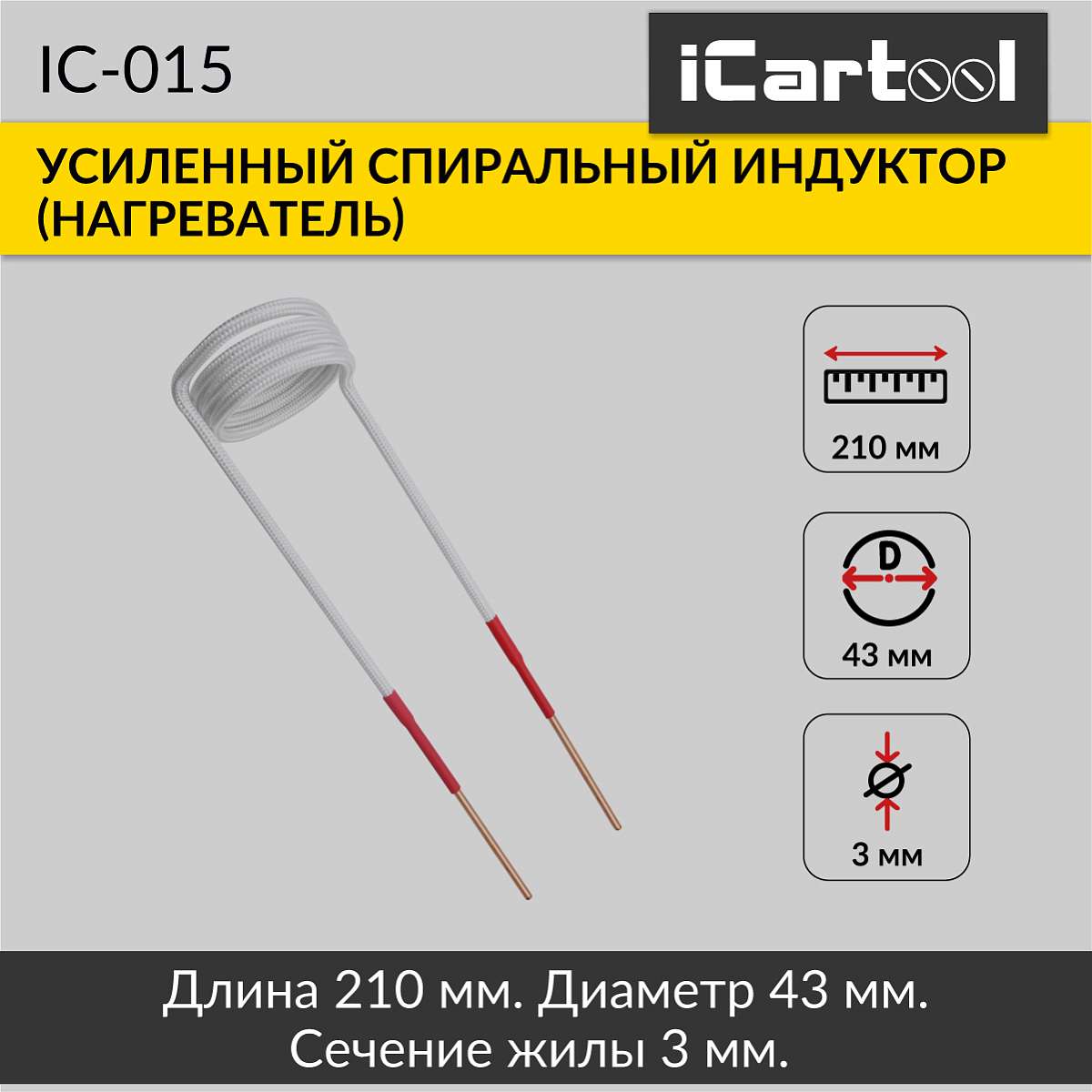 Усиленный спиральный индуктор (нагреватель) длиной 210 мм. диаметр 43 мм. Температура нагрева до 1000 градусов
