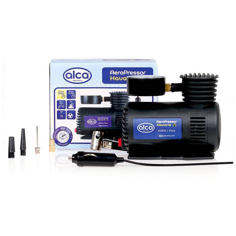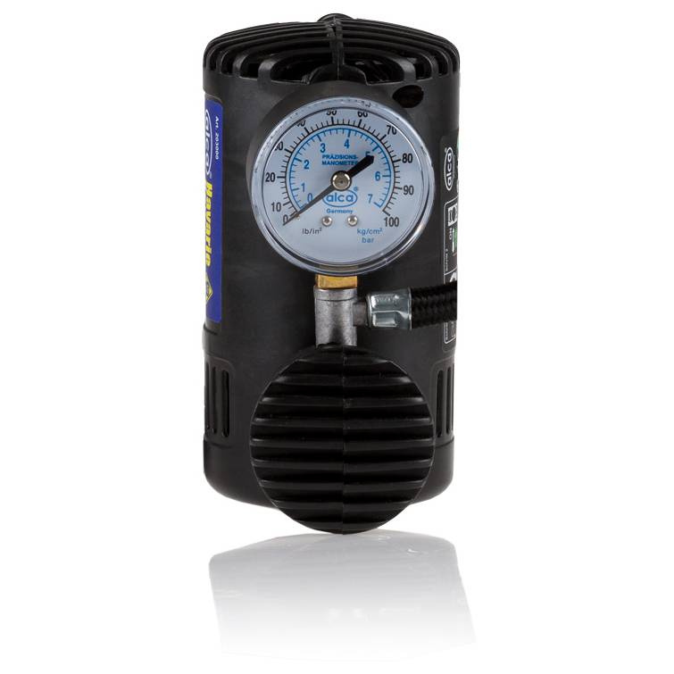 Портативный автомобильный компрессор Alca с питанием от бортовой сети (от прикуривателя) быстро подкачает шины вашего автомобиля в любое время и любом месте.