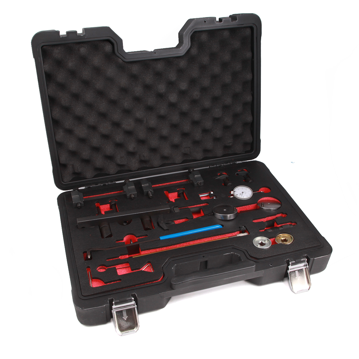 CT-D1413 набор для установки фаз ГРМ на автомобилях VW, AUDI, SKODA, SEAT. Универсальный набор инструмента состоит из 13 приспособлений и применяется для проведения ремонтных работ ГРМ бензиновых и дизельных двигателей VAG 1.2L/1.4L/1.6L/2.0L/2.4L/2.5L/3.2L/4.2L/5.2L MPI,FSI,TFSI,TSI. Может быть использован при ремонте двигателей серии EA111, EA113 и их производных. Частично подходит для двигателей EA888. Применение набора инструментов CT-D1413 по маркам автомобилейVolkswagen