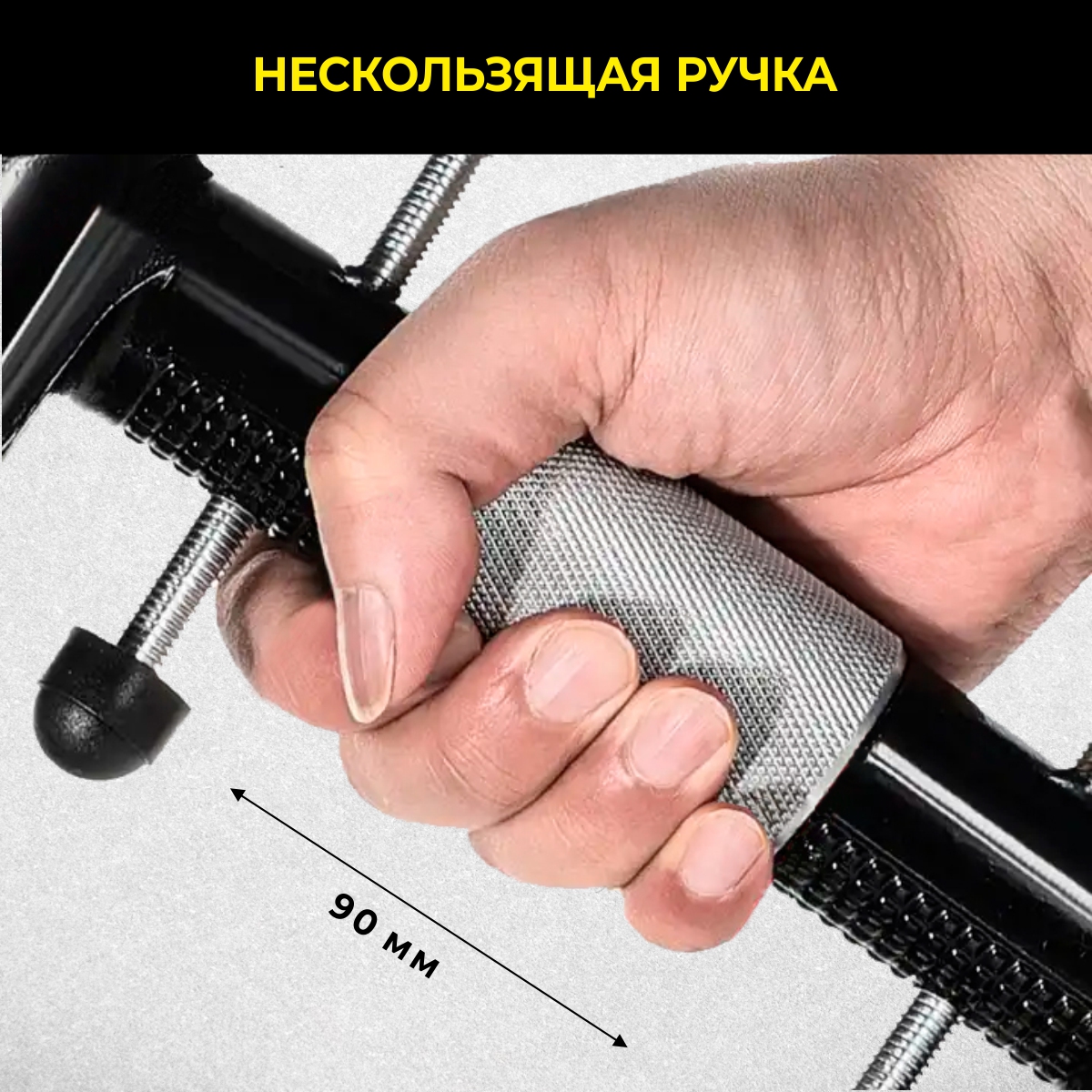 - Широкая нескользящая ручка 90 мм