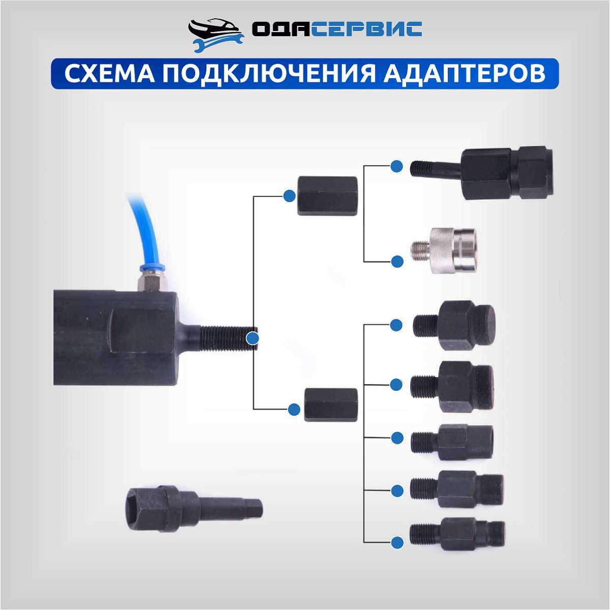 Схема подключения адаптеров к съемнику форсунок ODA-3204B
