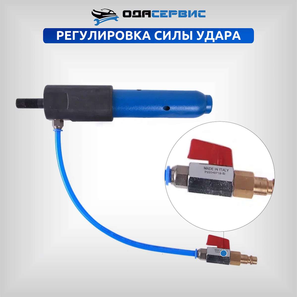 - Регулировка силы удара при помощи регулирования подачи воздуха