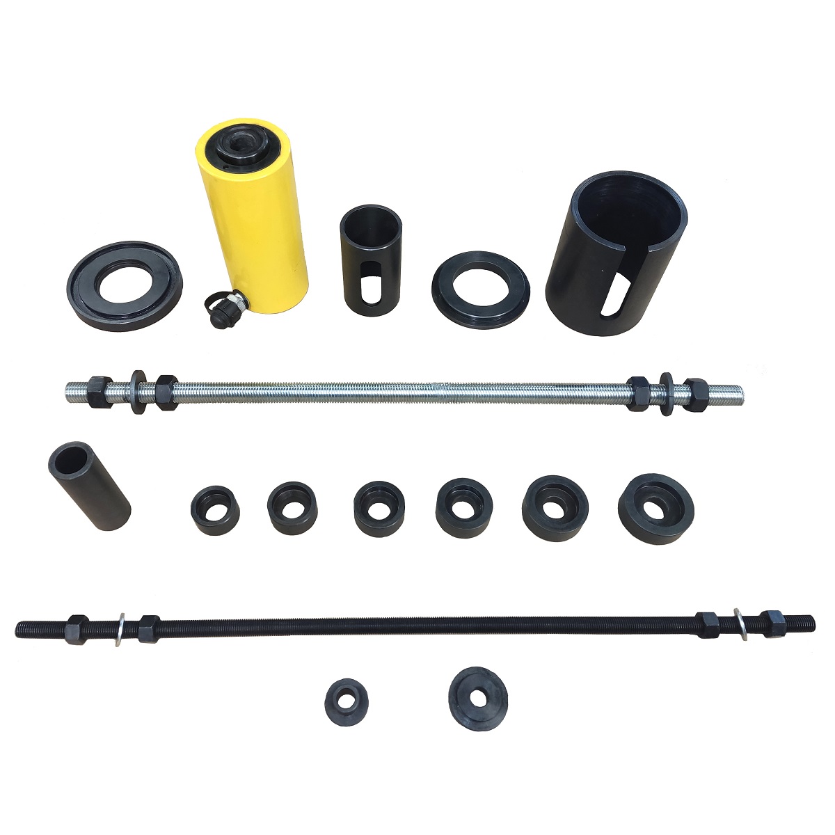 - Широкий ассортимент аксессуаров и оправок стандартной комплектации позволяет обслуживать сайлентблоки с наружным диаметром от 45 до 70 мм и внутренним диаметром втулки от 16 до 24 мм