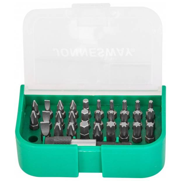 Комплект вставок-бит Jonnesway (артикул DBT31B) - 31 предмет для работы с различными резьбовыми деталями с внутренним рабочим профилем. Набор поставляется в пластиковом боксе.