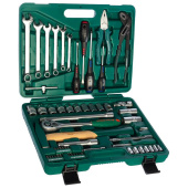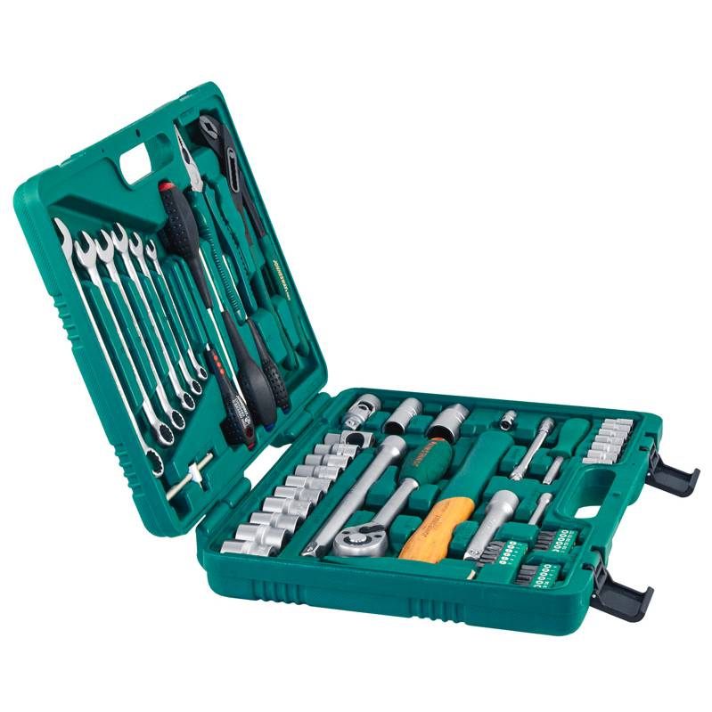 Набор инструментов универсальный JONNESWAY (артикул S04H52460S) - 60 предметов для проведения слесарно-монтажных работ и технического обслуживания автотранспортных средств. Состоит из торцевых головок, комбинированных ключей и отвёрток.