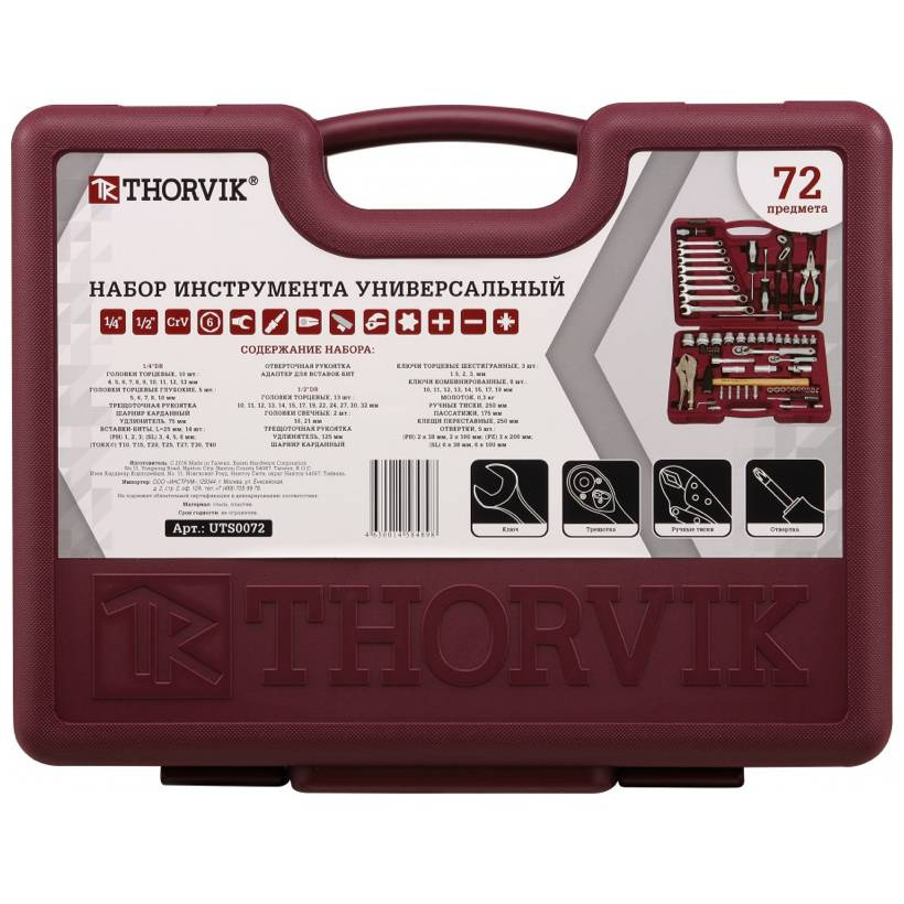 Универсальный набор инструмента Thorvik - 72 предмета в прочном пластиковой кейсе.