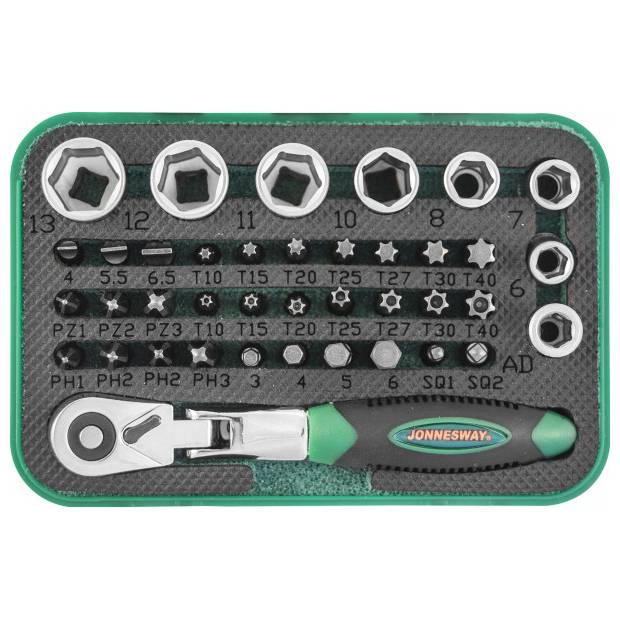 Набор торцевых головок 1/4"DR, вставок-бит с трещоточной рукояткой мини 1/4"DR Jonnesway, 60 зубцов, 40 предметов по доступной цене ✔ в интернет-магазине «ELM327rus». ✈ Заказывайте с доставкой в Новосибирск и по всему миру. -