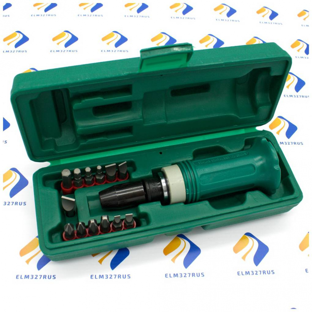 Ударно-поворотная отвертка с ТПР протектором, обеспечивающим надежное удержание инструмента и защиту руки оператора от возможных повреждений при работе. Привод отвертки изготовлен из хромомолибденовой стали.