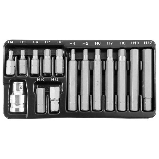 Набор вставок-бит Jonnesway 10 мм шестигранных Н4-12 мм. (30 и 75 мм), 15 предметов