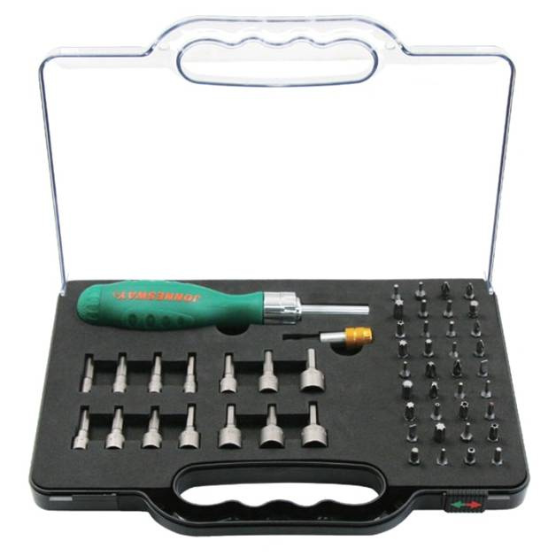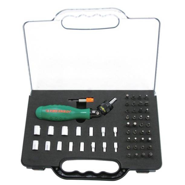 Рукоятка Jonnesway отверточная трещоточная в наборе с битами и насадками, 52 предмета