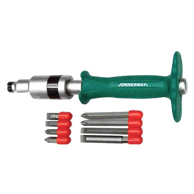 Ударная отвертка с битами Jonnesway SL 8,10мм PH# 2,3 36мм и PH# 2,3 80мм, 7 предметов