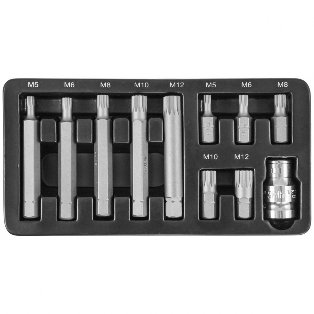 Набор вставок-бит 12-гранных Jonnesway S29H4111S 10 мм Spline М-профиль (30 и 75 мм), М5-М12, 11 предметов