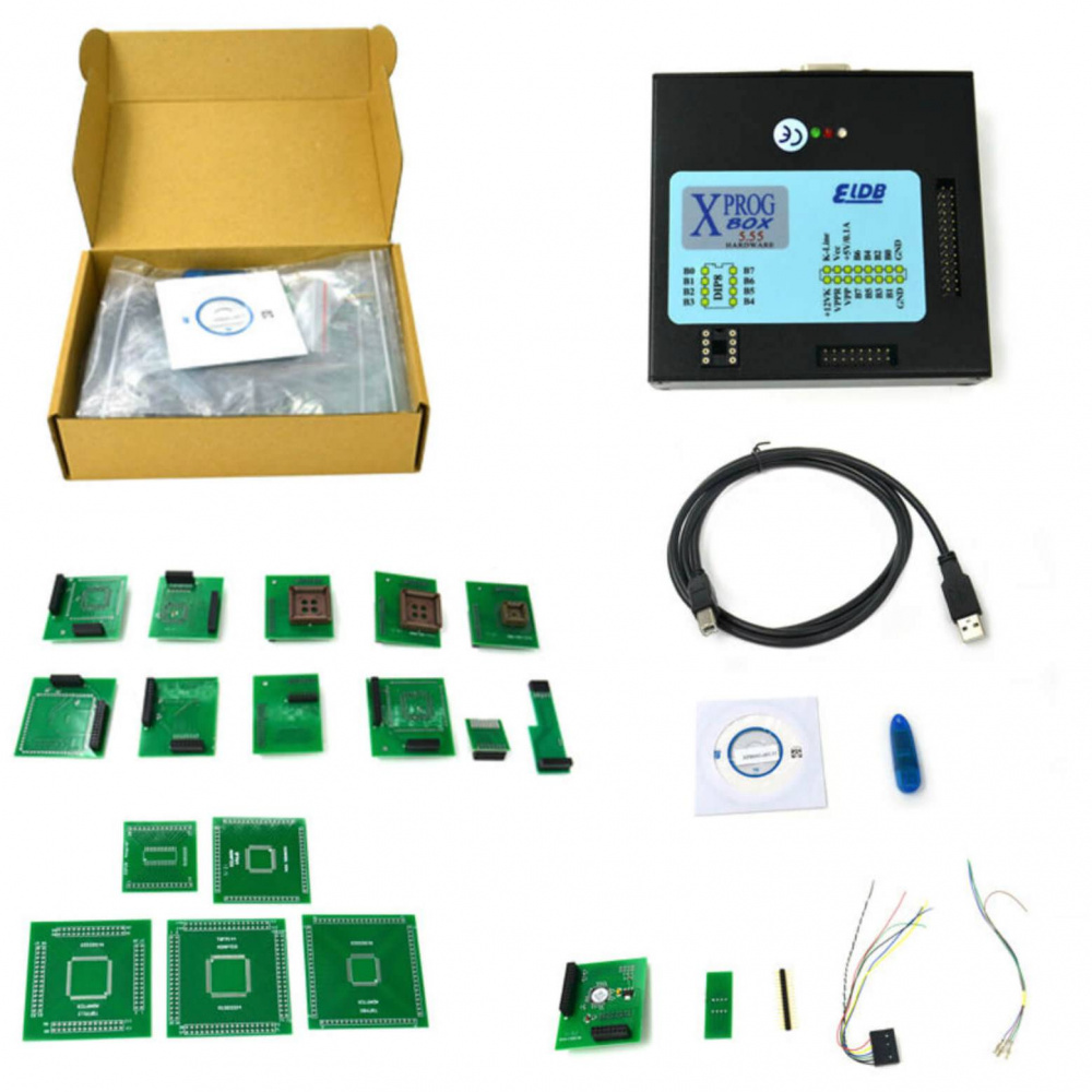 Универсальный программатор XPROG-m v 5.55 можно отнести к классу полупрофессиональных. Он обладает широчайшим функционалом, поддерживает множество различных микросхем и требует от пользователя определённый набор знаний в работе с блоками управления. В комплект устройства входят 19 различных адаптеров для микросхем.